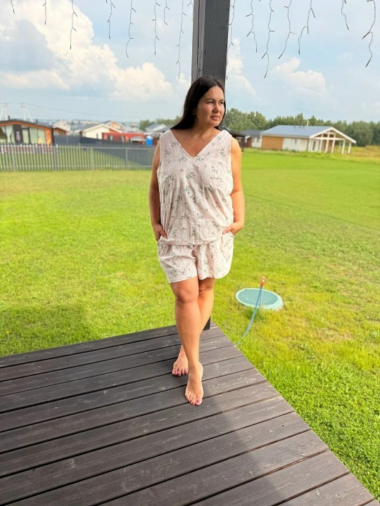 Вместе рубашка и шорты «Луиза» образуют комплект, который объединяет лёгкость и уверенность. В нём можно быть красивой для себя — и чувствовать это каждой клеточкой.