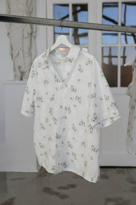 Хлопковая рубашка с коротким рукавом и мягким цветочным узором. Свободный силуэт дарит ощущение лёгкости, а классический воротник делает образ собранным и элегантным даже дома. В ней хочется встретить утро с чашкой кофе или провести вечер за любимой книгой.